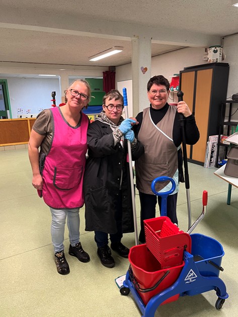 - À la Mairie d’AUBIGNY SUR NERE, Céline a travaillé en duo et découvert le métier d’agent d’entretien des locaux.