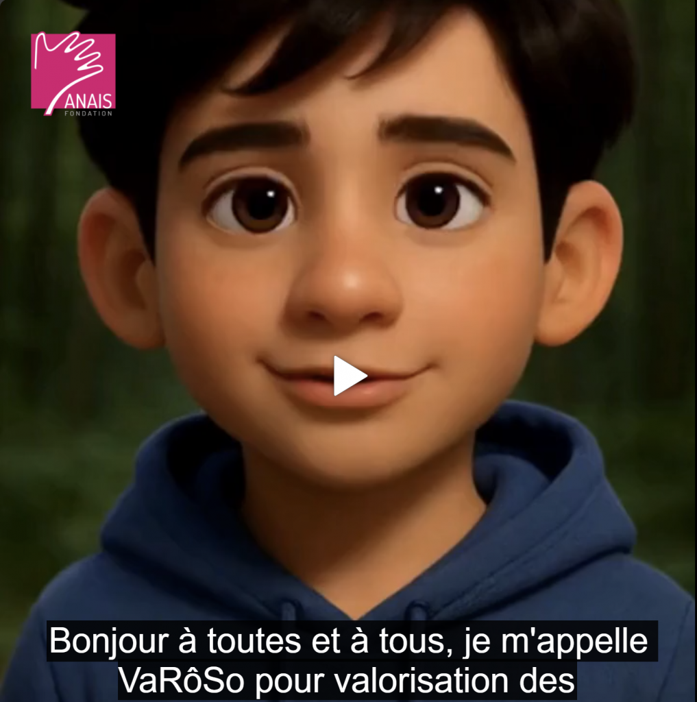 un avatar nommé VaRôSo (Valorisation des Rôles Sociaux) créé par une IA, et capable de lire les textes à voix haute,