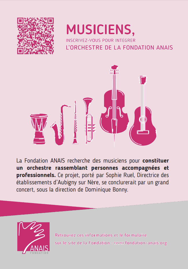 Dans le cadre d’un projet musical prévu pour 2026, la Fondation ANAIS souhaite recenser les musiciens présents parmi les personnes accompagnées ainsi que parmi les professionnels.